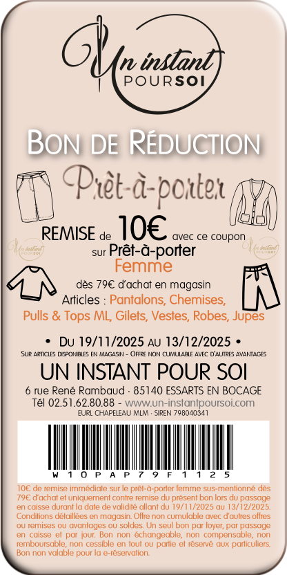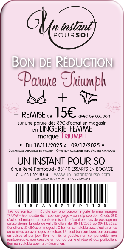 Retrouvez nos promotions et événements en cours de la boutique Un Instant pour Soi.