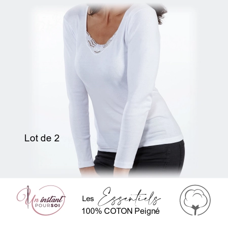 Chemise à manche longues ultra féminine avec sa jolie finition broderie et biais satin.